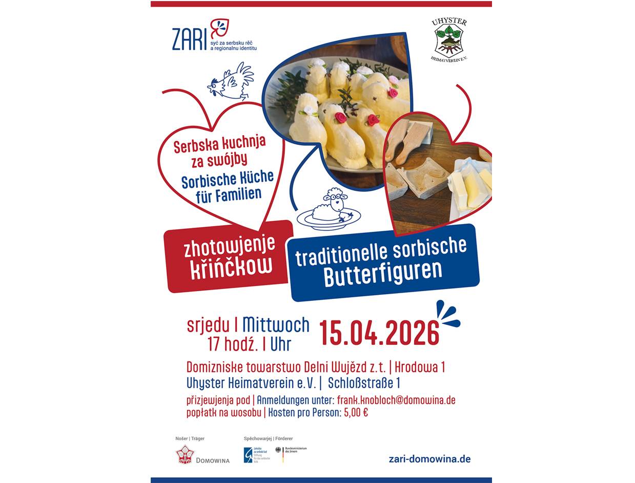 17:00 hodź. Serbska kuchnja za swójby “zhotowjenje křińčkow” w Delnim Wujězdźe (Domizniske towarstwo Delni Wujězd z. t.; Hrodowa 1) informacije poda po naprašowanju motiwator za serbsku rěč projekta ZARI, Frank Knobloch