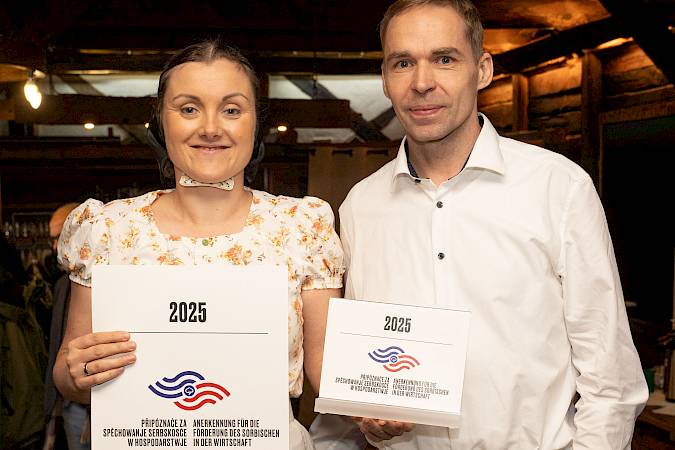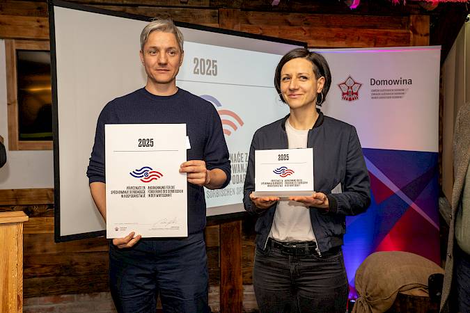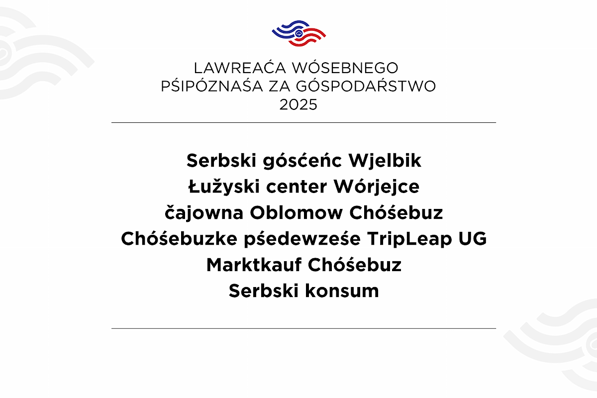 Die Domowina – Zwězk Łužyskich Serbow | Zwjazk Łužiskich Serbow | Bund Lausitzer Sorben verlieh in 2025 erstmals den „Sorbischen Wirtschaftspreis“. Mit diesem Preis möchten wir verschiedene sorbische Angebote fördern und anerkennen. In einer Zeit, in der kulturelle Identität und regionale Vielfalt zunehmend an Bedeutung gewinnen wollen wir Unternehmen und Dienstleister unterstützen, die sich für die Erhaltung und Stärkung der sorbischen Sprache und Kultur einsetzen.