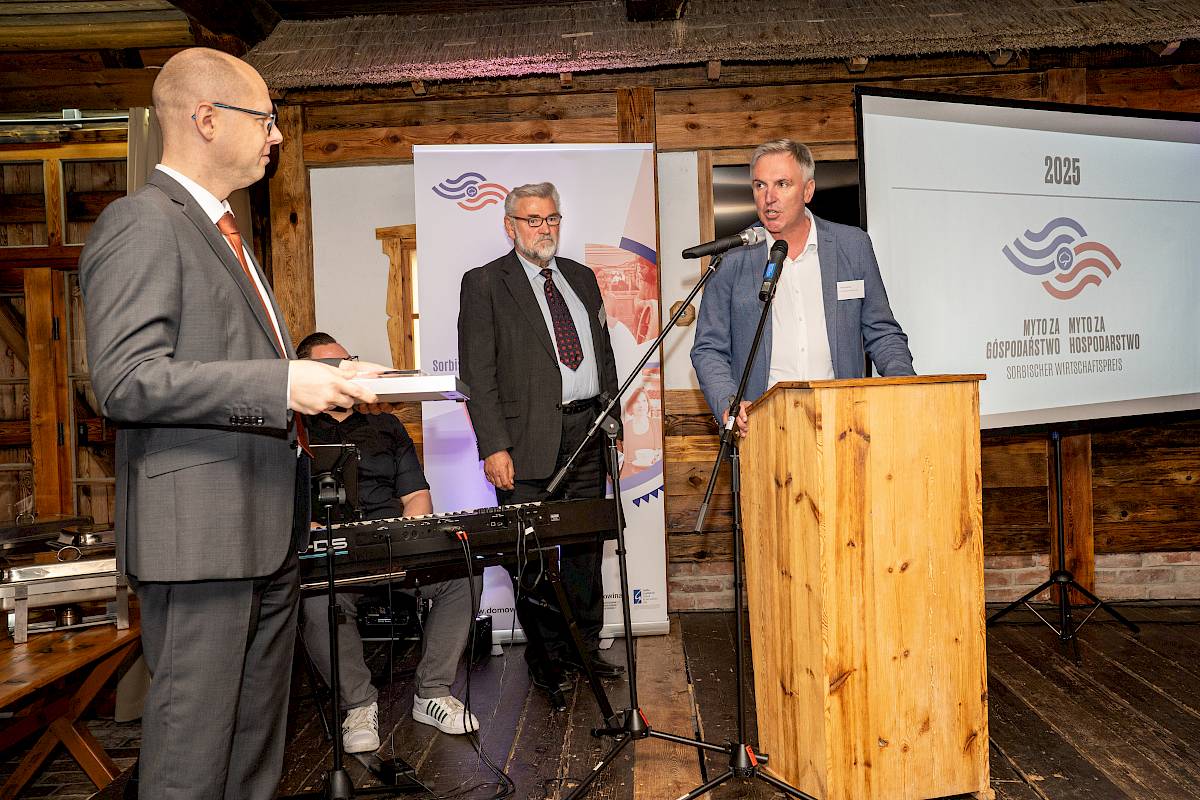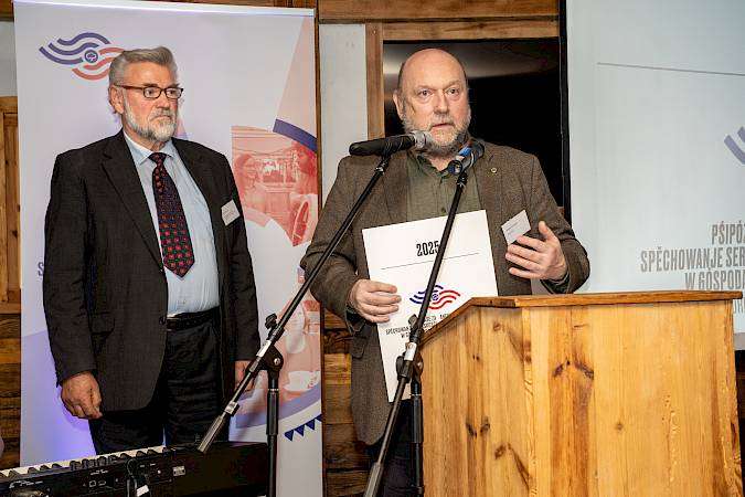 Am 10. November 2025 wurde in Čorny Chołmc | Schwarzkollm erstmals der Myto za góspodaŕstwo | Myto za hospodarstwo | Sorbische Wirtschaftspreis verliehen. Im Namen des Bundesvorstandes ehrte der Ausschuss für Angelegenheiten des Strukturwandels, der Wirtschaft und Infrastruktur der Domowina Unternehmen, die sich in besonderer Weise für die sorbische Sprache und Kultur im Wirtschaftsleben einsetzen.