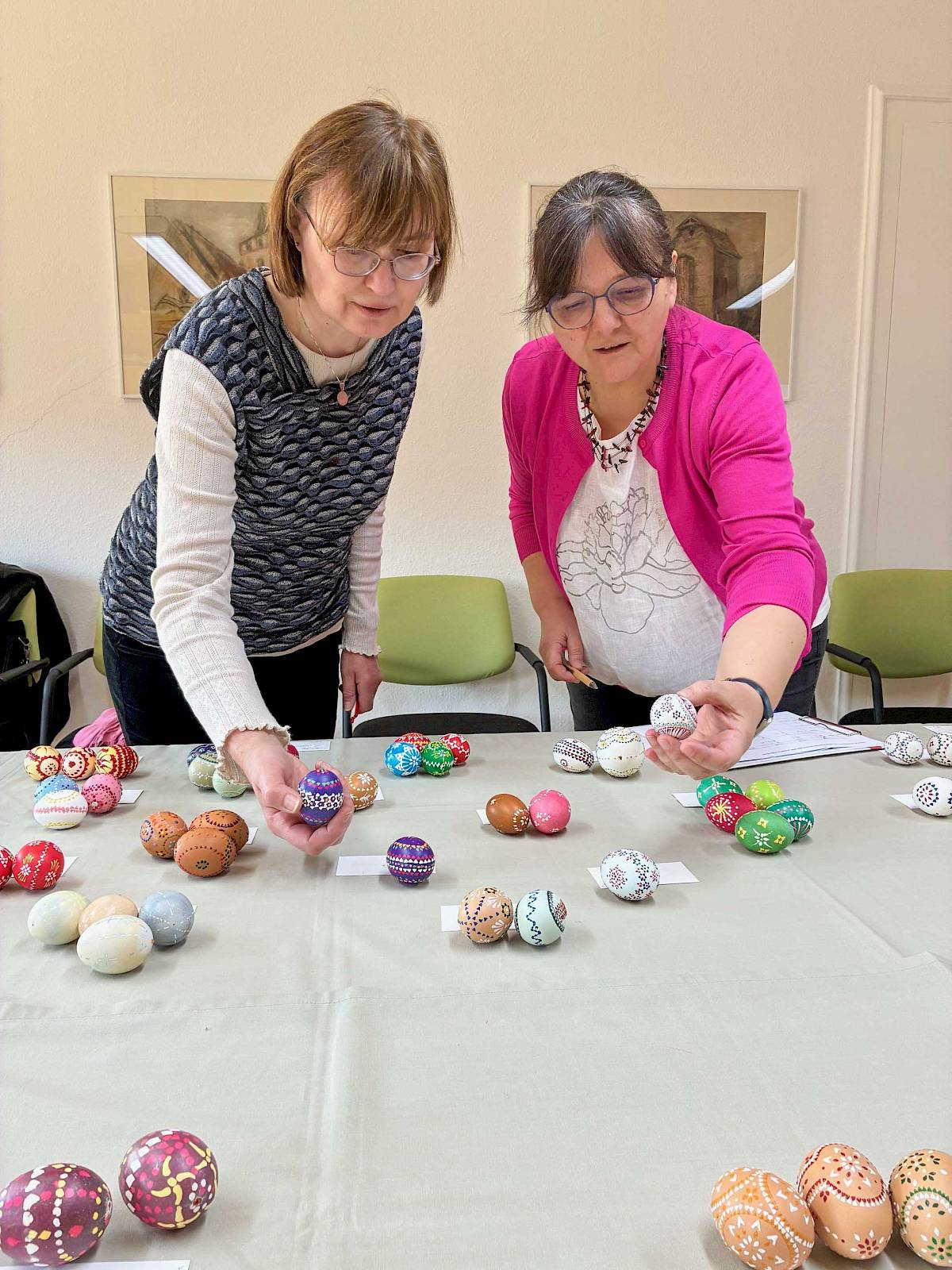 „Da die Vorbereitung und Verzierung von Ostereiern in der Wachsbatiktechnik deutlich aufwendiger ist als das Bossieren, geht diese Technik zunehmend verloren“, erklärten Rehor und Paulik. Sie hoben daher besonders die eingereichten Kollektionen hervor, die in dieser traditionellen Technik gestaltet wurden. Zudem empfahlen sie, bei Wettbewerbsbeiträgen verstärkt auf klassische sorbische Ornamentik sowie auf eine ausgewogene Musterverteilung zu achten und keine künstlichen (z. B. Plastik-)Eier zu verwenden.