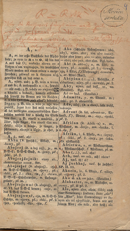 Das sog. Maćica-Wörterbuch erscheint, verfasst von Christian Traugott Pfuhl unter Mitarbeit von Handrij Zejler und Michał Hornig