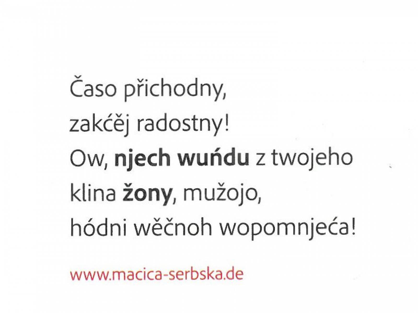 Anlässlich des 150. Gründungsjubiläums der Maćica erscheint das illustrierte Buch „Trać dyrbi serbstwo, zawostać“ (Autor: Měrćin Völkel) über die Geschichte des Vereins