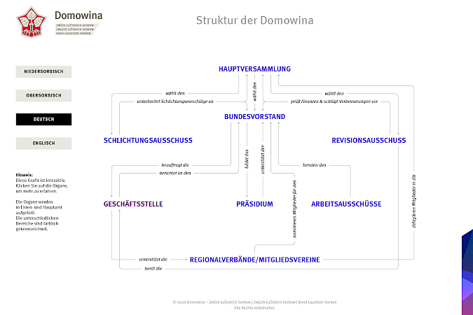 Domowina jo žywa wót swójich cłonkow. W župach, kupkach a towaristwach angažěruju se Serbowki a Serby za rěc, identitu a kulturu. Zgromadnje zasajźujomy se za pśichod našogo luda.