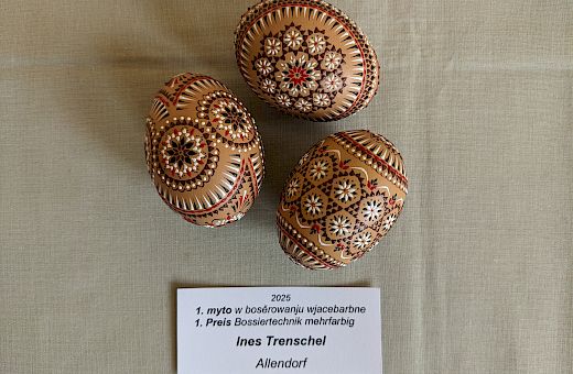 Collections (three blown-out hen’s eggs) created using traditional tools in the recognised Sorbian techniques will be awarded prizes: