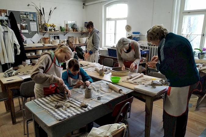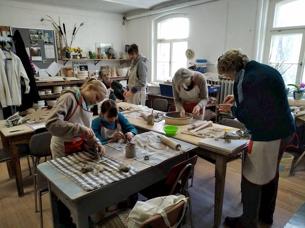 Twice a year, a weekend workshop with experienced ceramic artists offers the opportunity to design and create large-format vessels, reliefs or sculptures. Participants with little or no prior experience receive professional guidance, gain insight into the historical development of Lusatian ceramic craftsmanship and become familiar with working with clay.