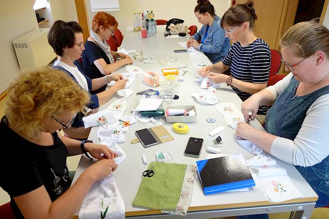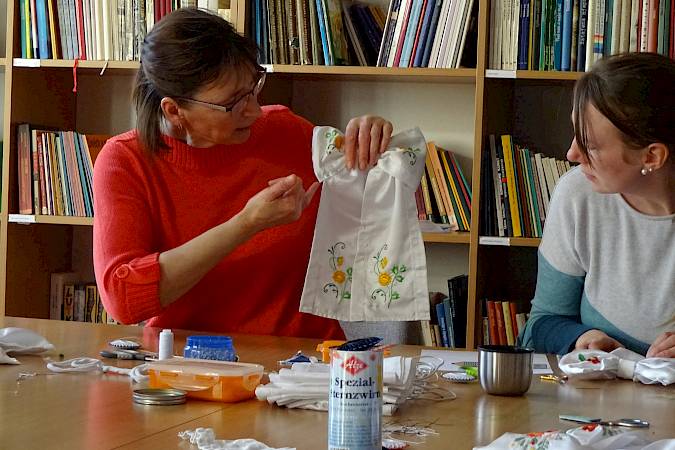 The annual workshop days, each dedicated to a specific theme related to a selected Sorbian region, have had a very positive impact on the creativity and performance of the individual participants. In addition to professional and methodological guidance from a Sorbian artist, the collaborative work – shared discussions and the final review of the completed pieces – provides strong inspiration for each participating folk artist.