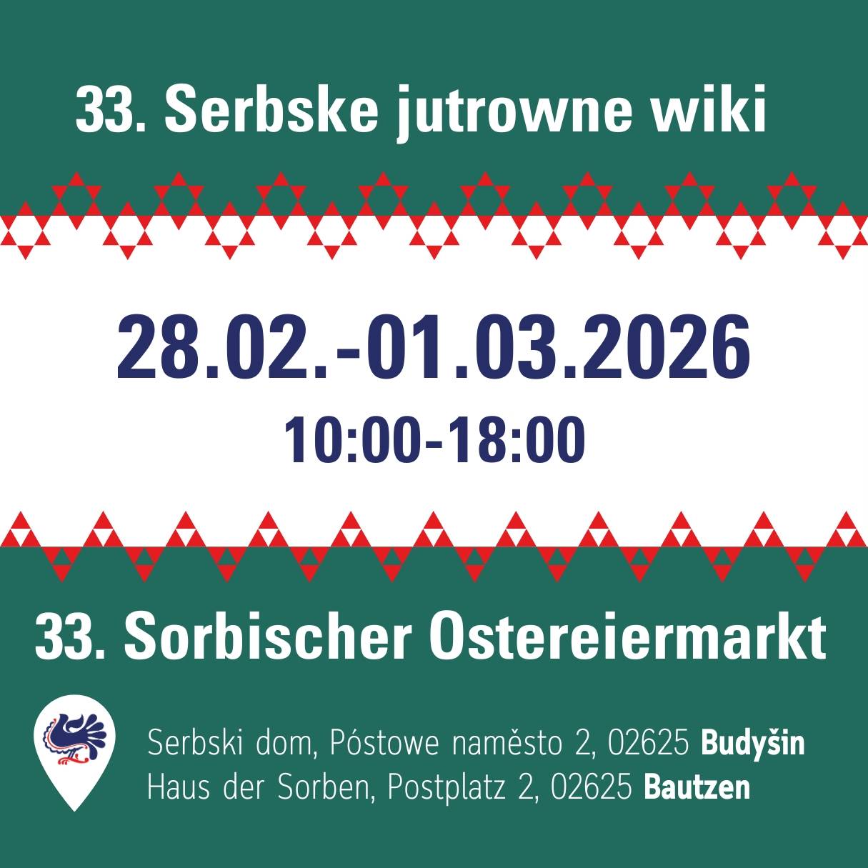 Hač do 18.02.2026 móža so jejka we wubědźowanju wo najrjeńše serbske jutrowne jejko 2026 wotedać, informacije namakaće tu: Wubědźowanje wo najrjeńše jutrowne jejko - za dorosćenych, Dalše informacije poda po naprašowanju projektowa managerka Rejzka Krügerowa.
